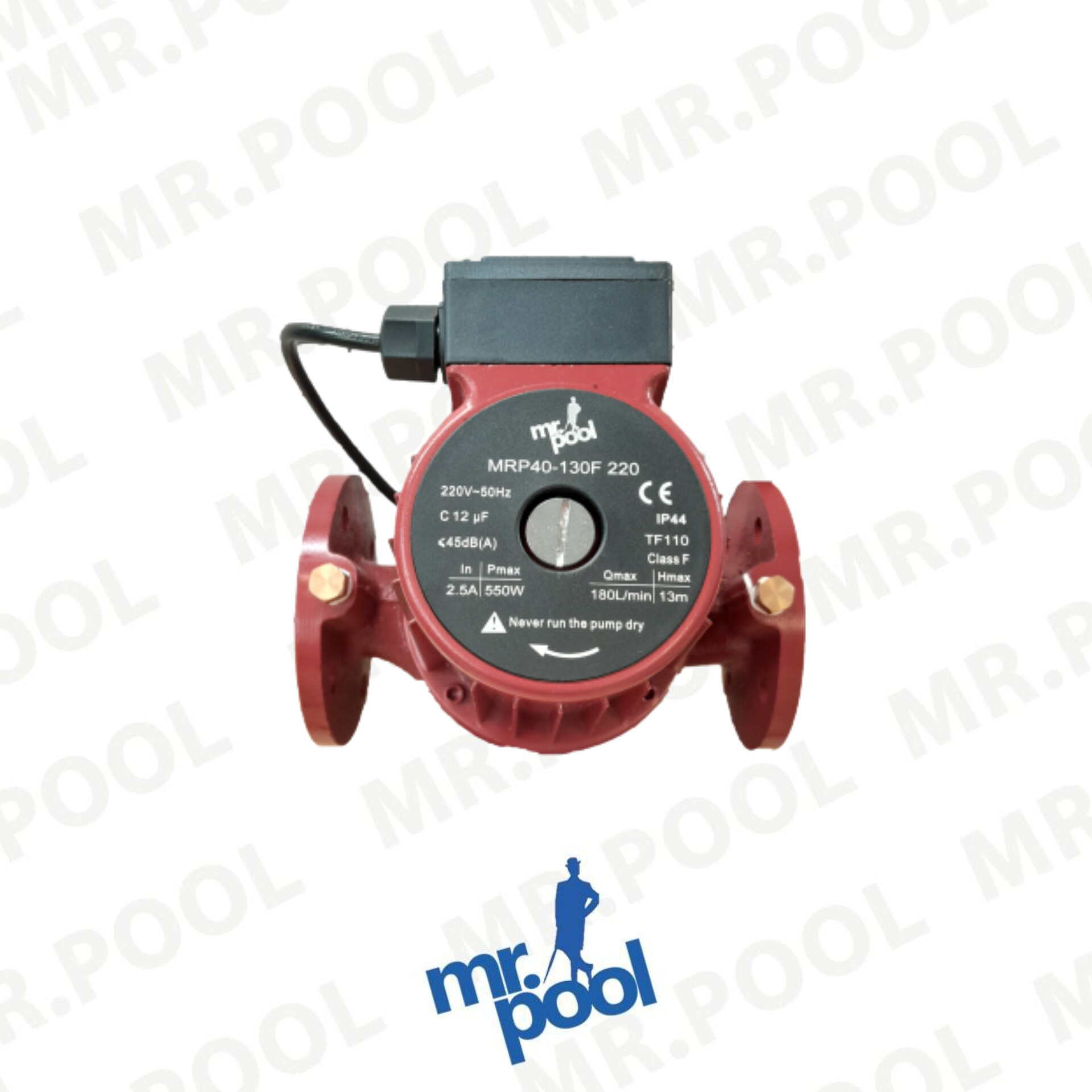 پمپ سیرکوله MR.POOL مدل MRP40-130F/220 دارای الکتروموتور تک فاز و تک دور بوده.هد آن 13 متر و دبی آبدهی آن 180 لیتر در دقیقه می باشد.